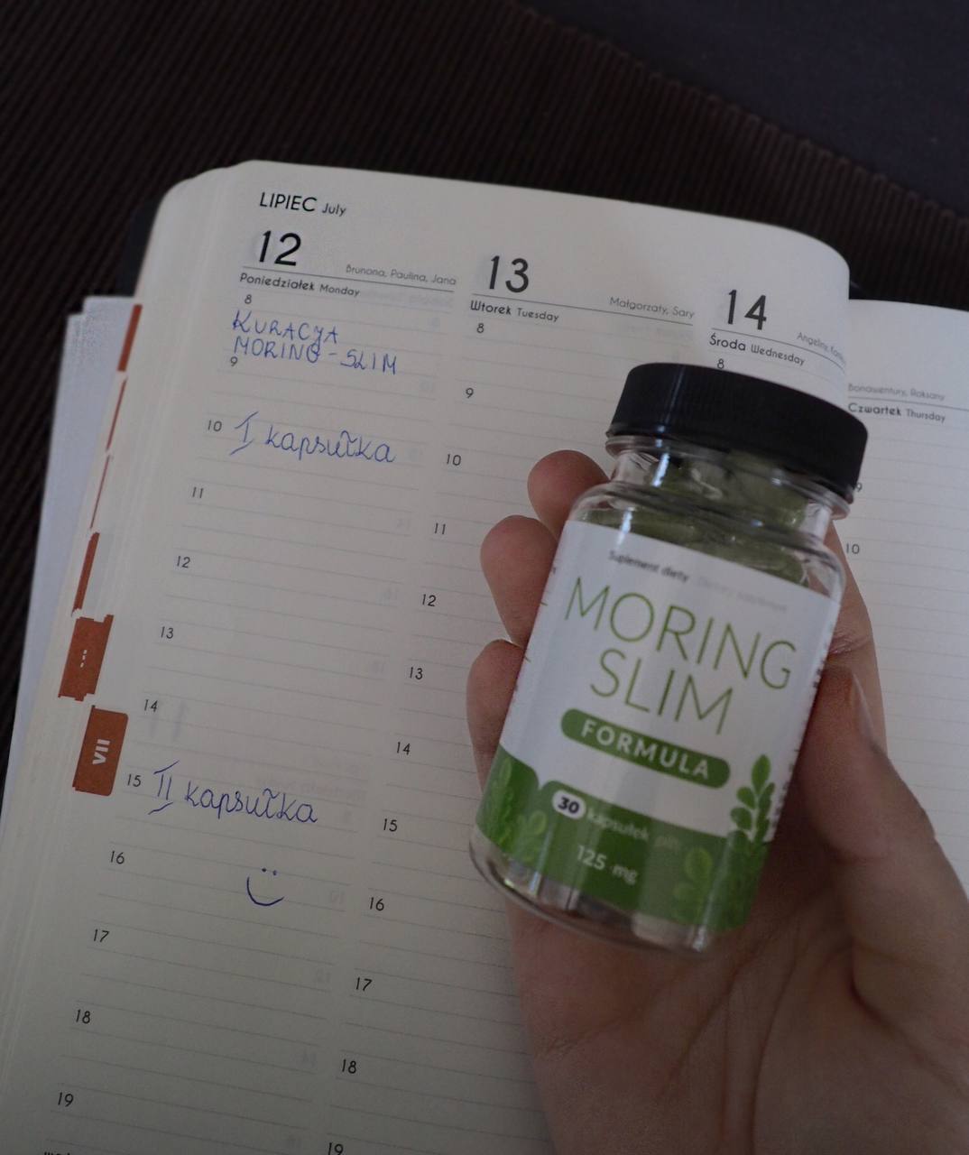 Moring Slim ma wygodną małą butelkę - zawsze noszę ją ze sobą. Właśnie zaczęłam je brać, ale już czuję, że zaczęły działać)